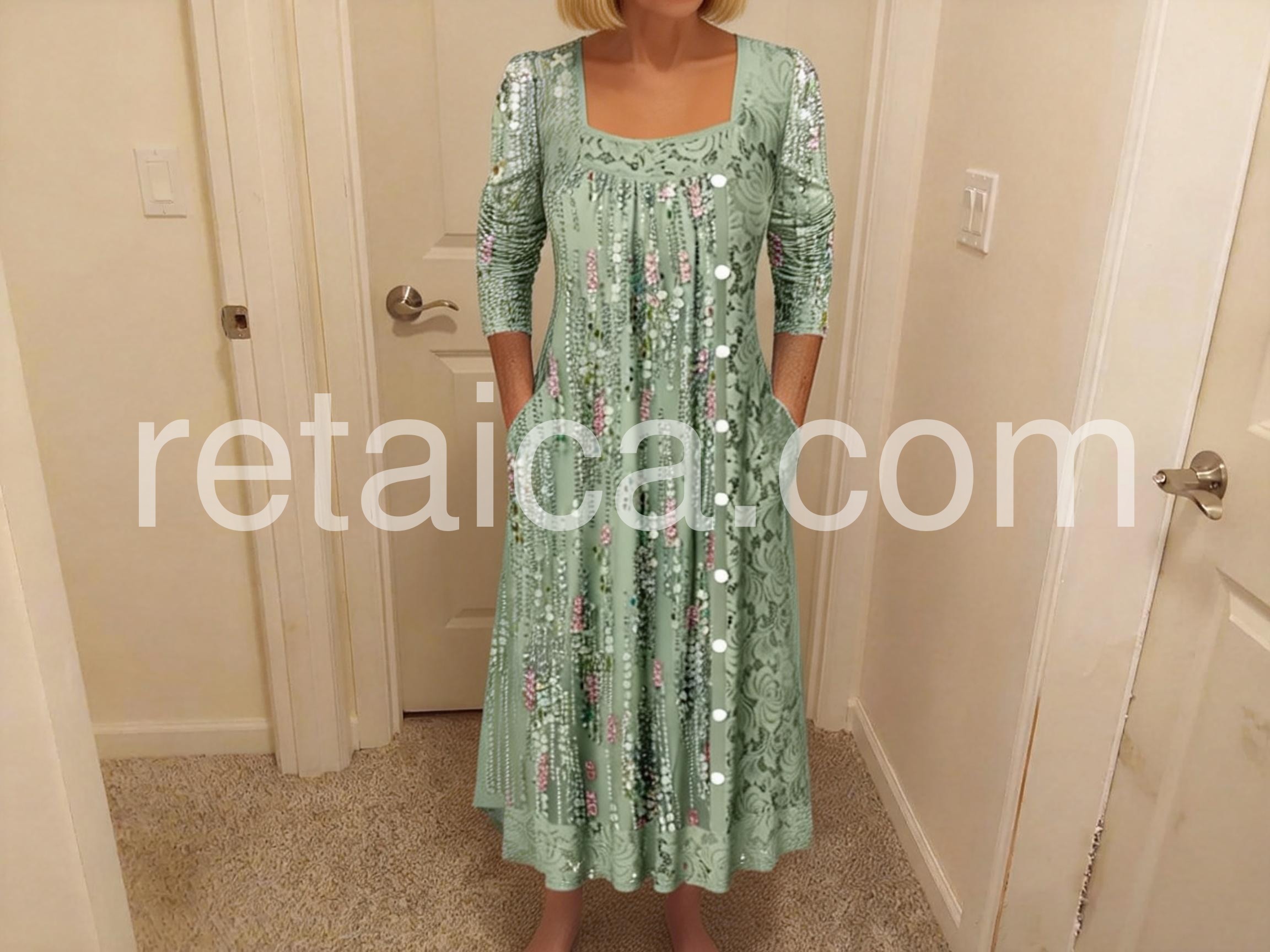 Yes!It runs true to the garment size chart please choose your size based on your measurements.Imagine effortless elegance that turns heads at every glance. This fresh green midi dress captures modern sophistication with its architectural square neckline that frames the collarbone beautifully, paired with graceful long sleeves for refined polish. The A-line silhouette flows with understated grace, while the luxurious rayon-elastane blend moves like silk against your skin—stretchy enough for all-day comfort, yet structured enough to maintain its impeccable shape. Practical side pockets add a touch of everyday luxury, while the midi length strikes the perfect balance between timeless and contemporary. Whether you're navigating the office, attending weekend brunches, or stepping into evening plans, this dress adapts seamlessly to your lifestyle. Machine washable for effortless care. Discover the dress that makes you feel as good as you look.