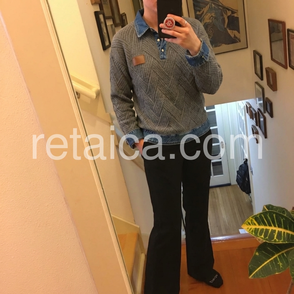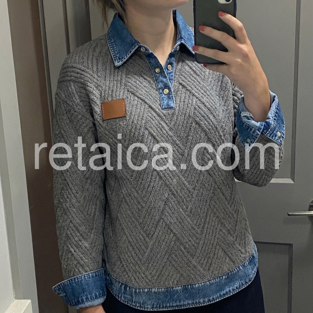 Yes!It runs true to the garment size chart please choose your size based on your measurements.Elevate your casual wardrobe with this sophisticated grey herringbone knit sweater, featuring a distinctive denim collar that bridges the gap between refined knitwear and relaxed styling. The herringbone texture adds visual depth and dimension, while the contrasting denim collar provides a contemporary edge perfect for layering or wearing standalone. Crafted for versatility, this piece transitions seamlessly from weekend wear to smart-casual settings, offering both comfort and polished appeal.