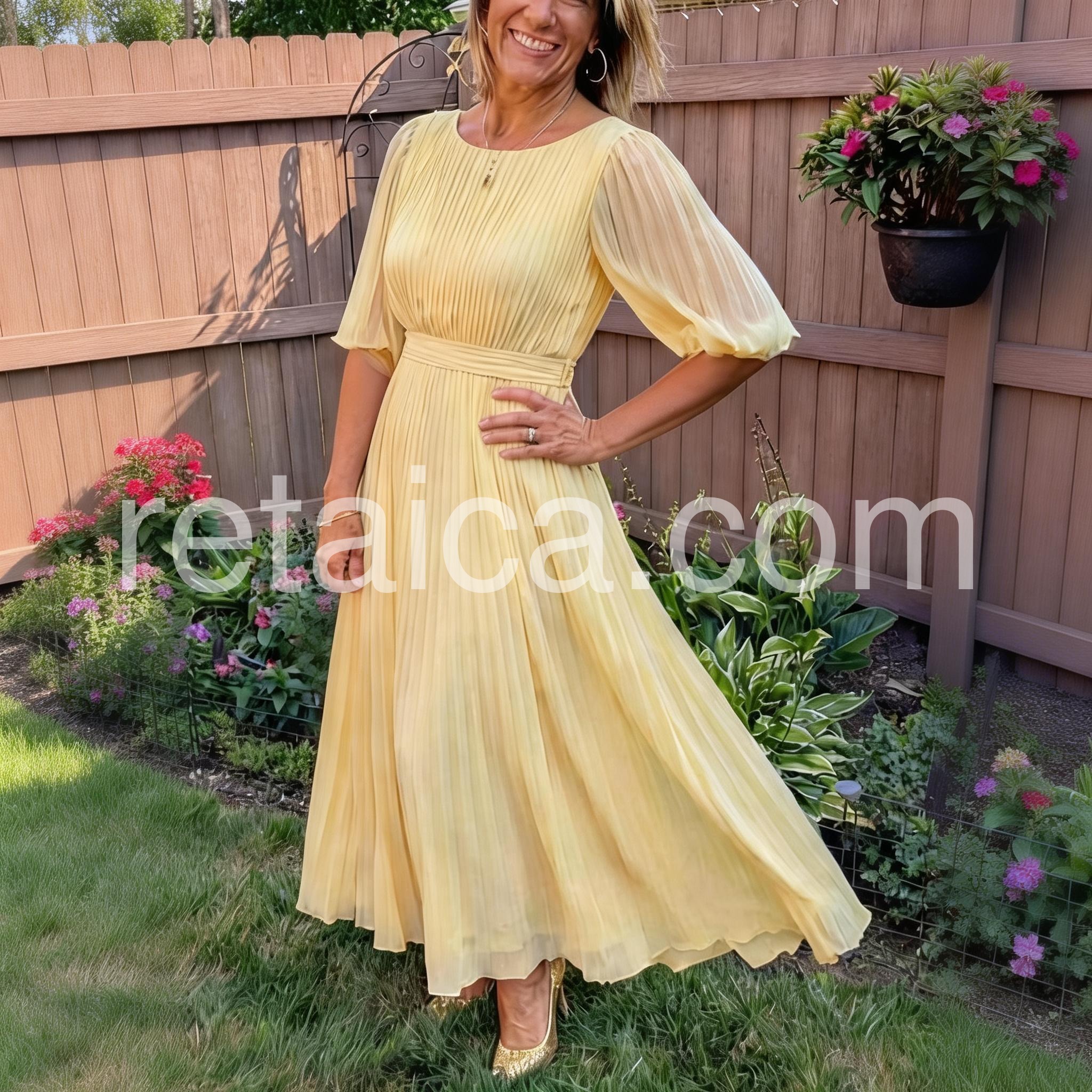 Yes!It runs true to the garment size chart please choose your size based on your measurements.Elevate your wardrobe with this sophisticated Yellow Plain Round Neck Maxi Dress. Designed with clean lines and a timeless silhouette, this floor-length dress combines comfort with elegance. The vibrant yellow hue brightens your appearance while the versatile round neckline flatters all face shapes. Perfect for formal events, summer gatherings, or styled with accessories for an elevated everyday look.