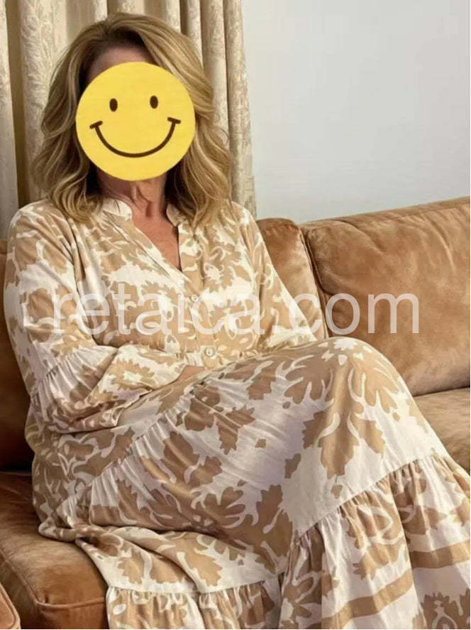 Yes!It runs true to the garment size chart please choose your size based on your measurements.This elegant maxi dress features an attractive v-neck and 3/4 sleeves, making it a versatile and stylish addition to any wardrobe. The timeless design and flattering silhouette make it perfect for any occasion. Crafted with high-quality materials, it provides both comfort and style.