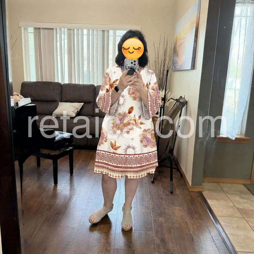 Yes!It runs true to the garment size chart please choose your size based on your measurements.This long sleeve mini dress features a unique floral print, adding a touch of elegance to your wardrobe. With its comfortable and stylish design, this dress is perfect for any occasion. Made from high-quality materials, it offers both durability and style. Elevate your look with this one-of-a-kind dress.