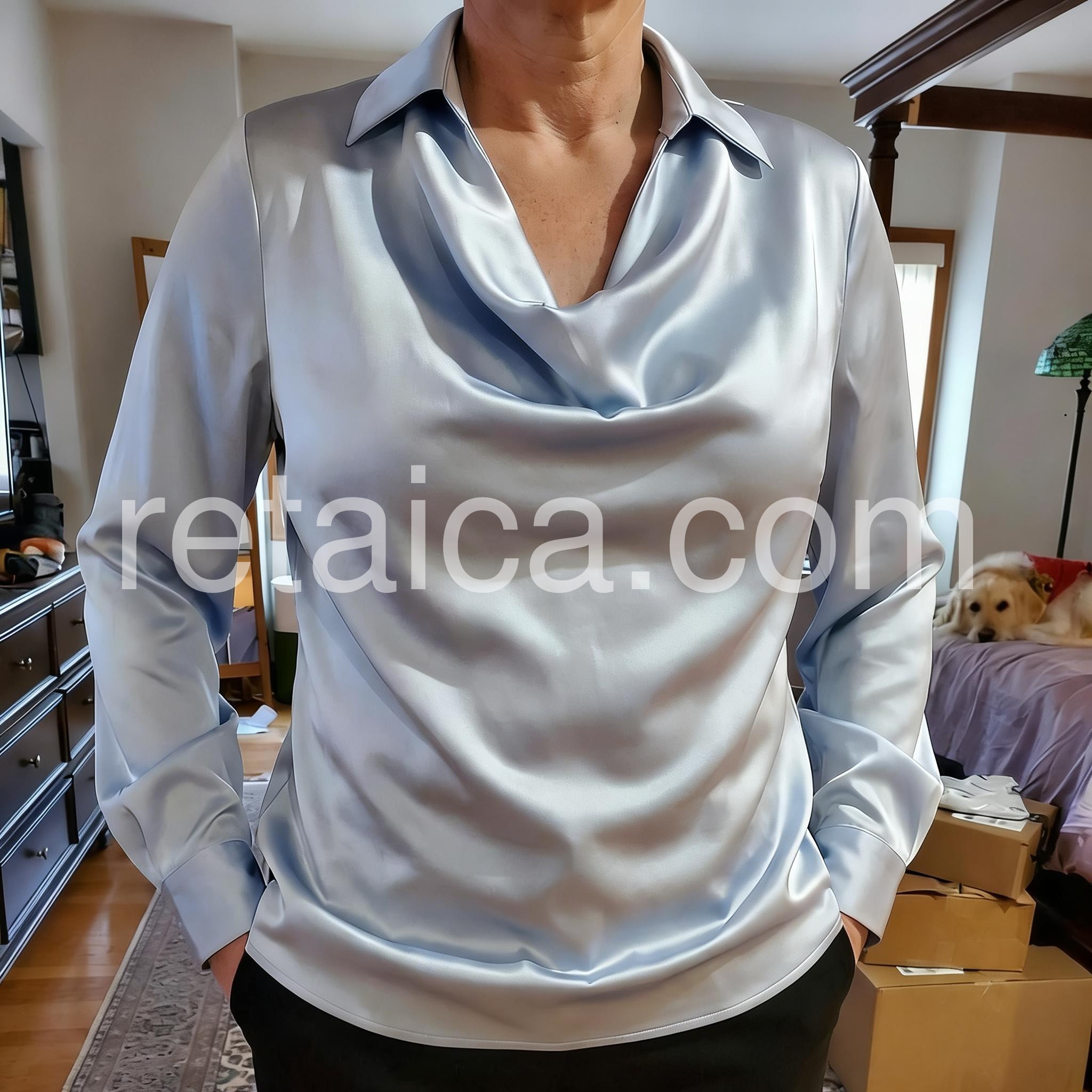 - Neckline: Collared