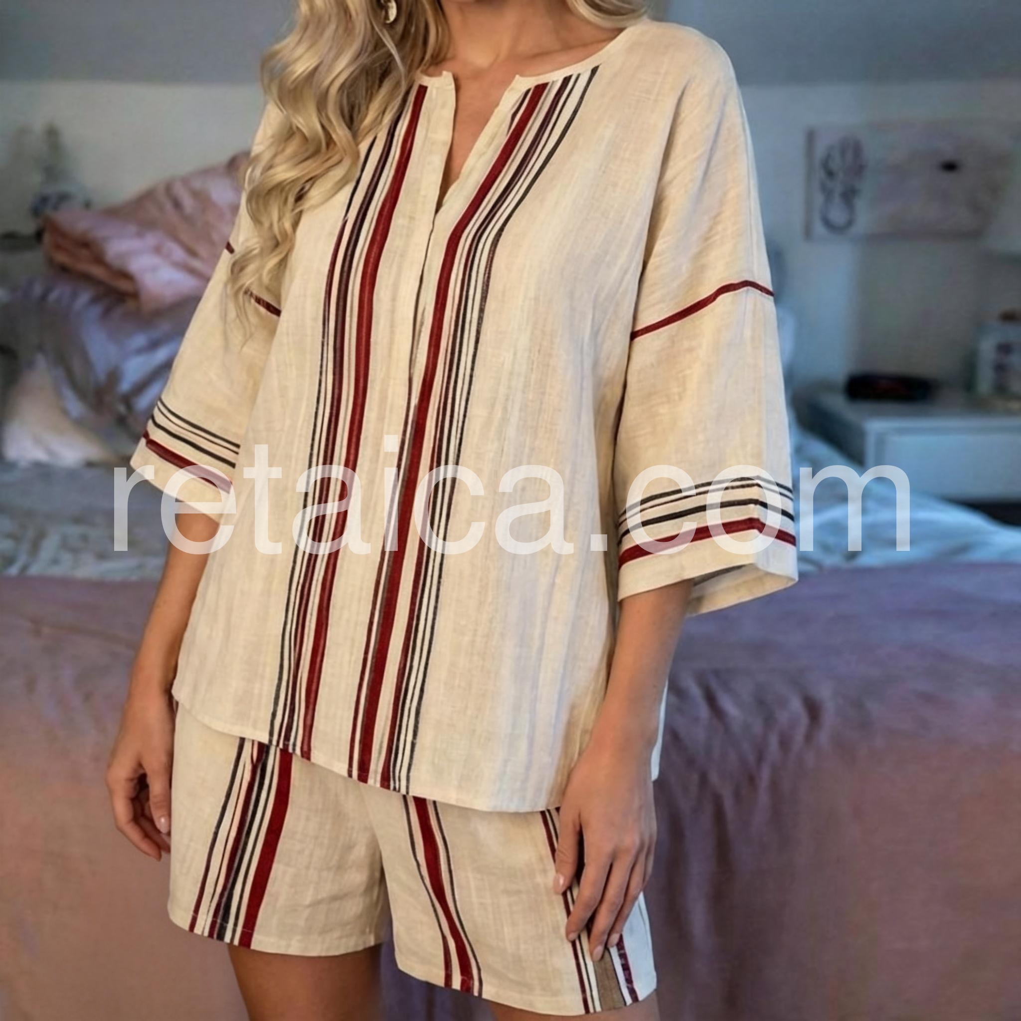 Yes!It runs true to the garment size chart please choose your size based on your measurements.This sophisticated two-piece set features a flattering V-neck design complemented by classic striped patterns. Engineered for optimal comfort without sacrificing style, the coordinated pieces offer versatile styling options for various occasions. The thoughtfully constructed silhouette provides a polished appearance while maintaining ease of movement throughout the day.