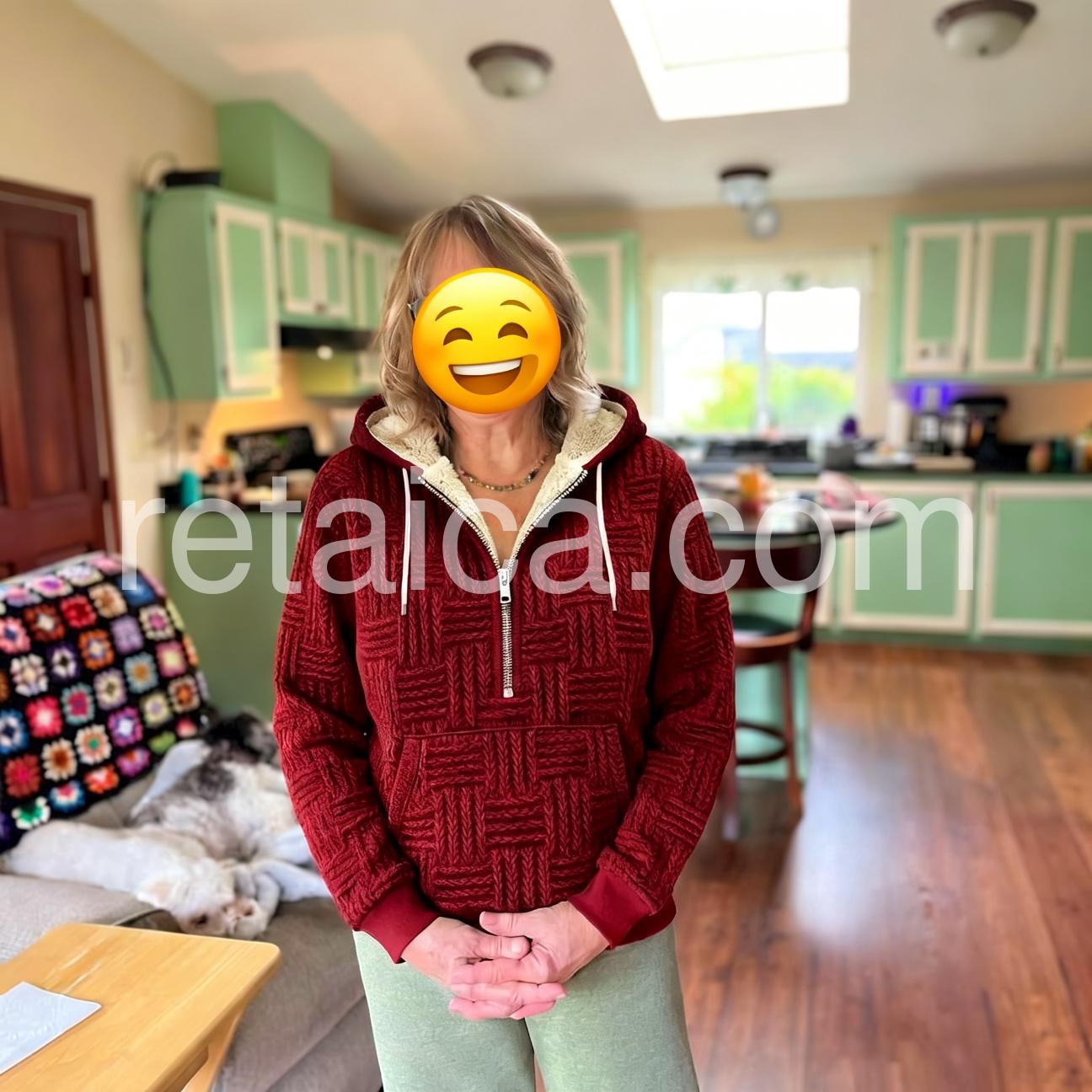 Yes!It runs true to the garment size chart please choose your size based on your measurements.Stay warm and comfortable with this red long sleeve hooded sweater, engineered with a soft fleece lining for superior insulation. The spacious hood provides extra coverage during unpredictable weather, while the relaxed fit allows for easy layering. Perfect for casual outings, outdoor activities, or cozy evenings at home. The durable construction ensures lasting wear through multiple seasons. An essential wardrobe staple that combines functionality with timeless style.