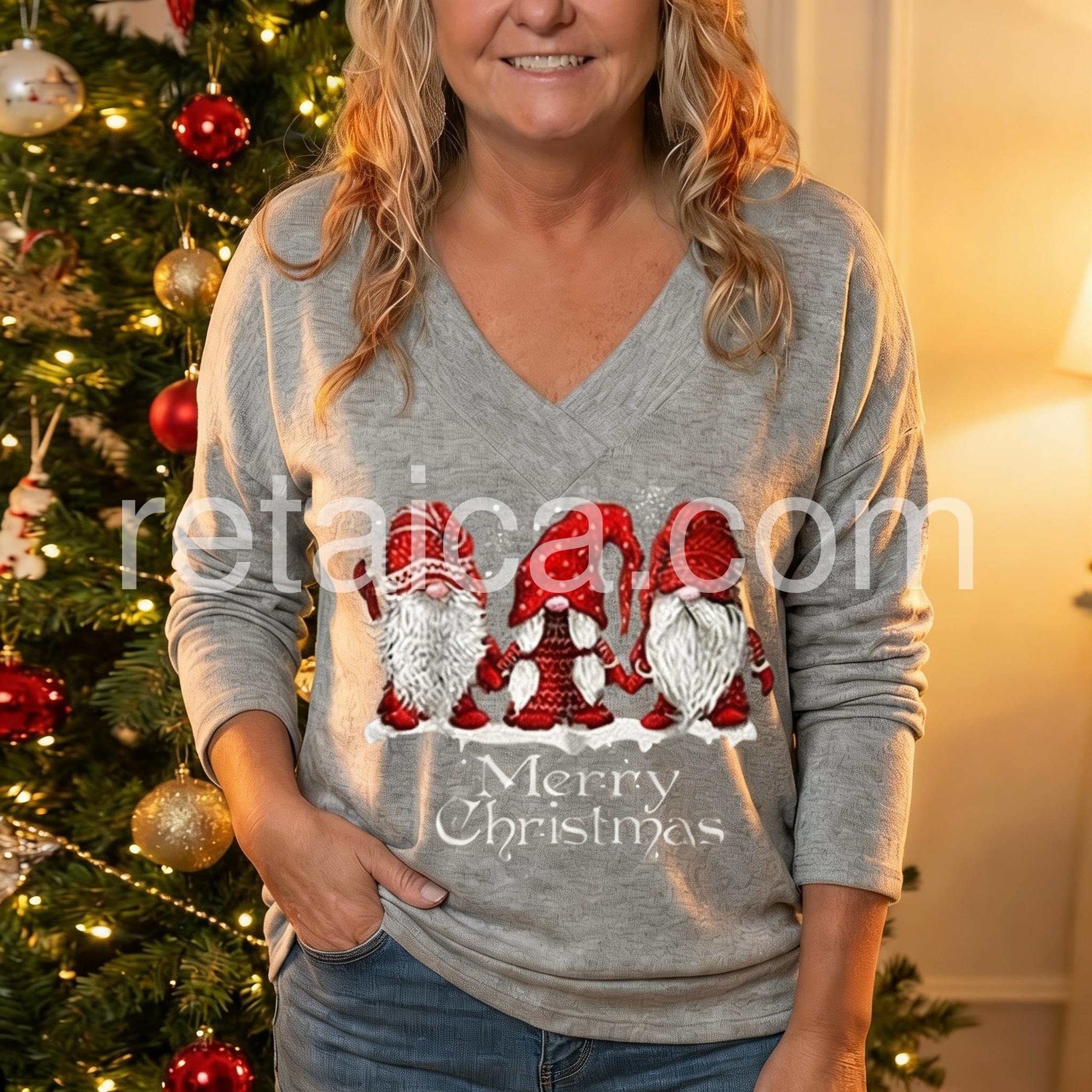 - Neckline: V-neck