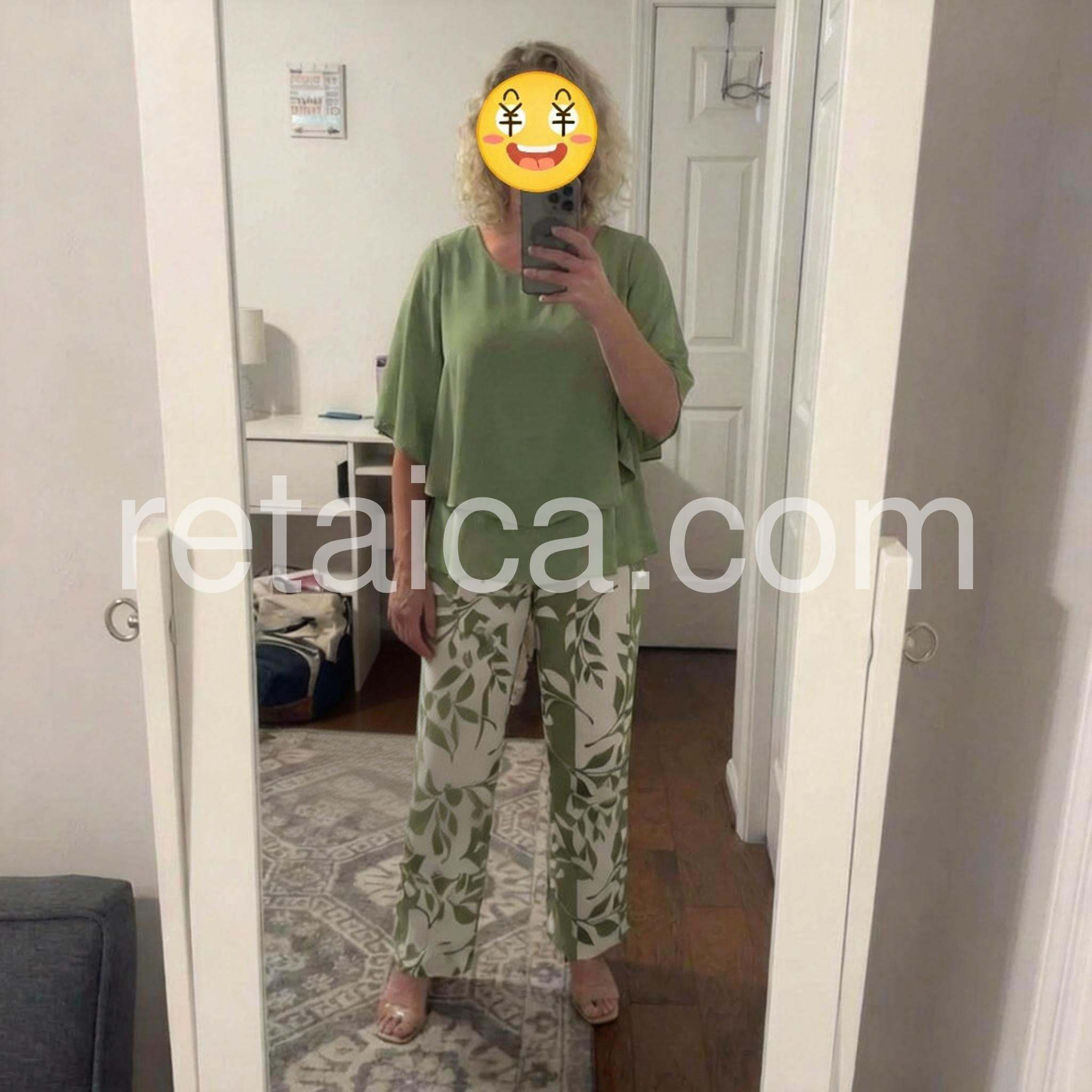 Trendy Green Print 3/4 Sleeve Two Piece Set